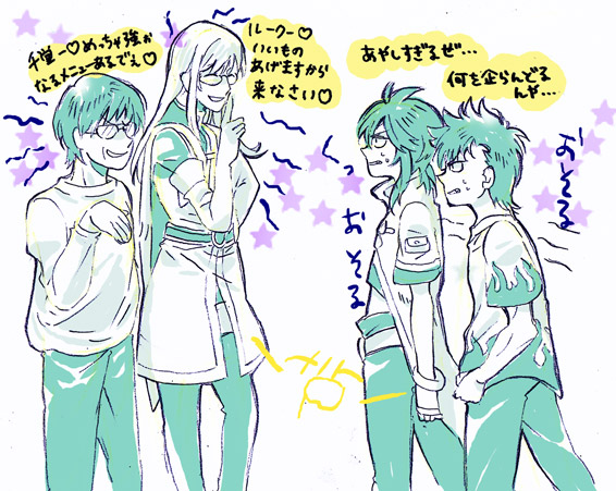 遠雷二次創作おたくブログサイト。TOAの35歳と7才をいちゃこらさせたい妄想ブログ垂れ流しサイト。 当然のことながらオフィシャルさまとは一切関係ありません。 バナー以外の画像の無断転載はご遠慮ください。PAGE | 1 2 3 4 5 6 | ADMIN | WRITE 2012.04.18 Wed 01:31:24 キスしてあげないかじりあうジェイルク^p^ はあはあ動悸やべえええええええ ツンデレカプはいいですなあ^p^ 無性に拍手マンガが描きたいんですが…ルークが道を歩いててジェイドがフェイント交えて邪魔してくるとかそんなしょうもないのしか思いつかない^^ネタ…ネタないよ^o^ PR 2012.04.16 Mon 01:46:01 歳の差ジェスティス!!あわわ更新が止まってたよー 近況じつは別館サイトとやらを制作していました。初…別館…! ジェンルはアレです。あつういアレです^^ サイト分けてそれぞれ好きな物を納得いく所まで描きます! 良かったら別館も覗いてやってみてください。 ジャンプ→別館遠雷 サイト二個になった記念にジェイルクと柳千^p^ どうやらわたしはメガネ攻め属性らしい^p^ 歳の差とか師弟関係とかもう大好きです。年齢離れるほどたまらん。 驚く事にベクトルが別に向きそうですが…ジェイルクは家のようなものなのでちょっくら旅行感覚で楽しんできます。 ジェイルクでは描けないものも描きたいし、ジェイルクも描きたい。忙しいね! 2012.03.24 Sat 02:11:52 あきらめない強さまたまたはじっぽですみません…。 最近は良い作品に出会えていろいろ充実した気持ちです。 ピアノの森のカイを見てて、楽しくお絵描きしていた頃を思いだせたり。 一歩のあきらめない強さにガッツをもらったり… それらを素直に受け入れられた自分に、良い方に変われたのかな…とか思ったり。 保守的だった。それだけが愛の形だと思ってました。 ブランクみたいなものがあったけど…またジャブから始めてみよう。エンジンはかかってきた! また楽しくジェイルク描けたらいいなあ… 続きから拍手のお返事です!拍手ありがとうございます> <返信不要の方もどもです> < 2012.03.24 Sat 02:10:44 はじっぽスムーチ完全なる俺得^p^この子らかわいいわ~ 千堂を板垣にしてもかわいいな 本誌のほうはやっと板垣vs冴木戦が決着つきましたね 板垣もかわいいお^^でも一歩が一番かわいいお^^ |